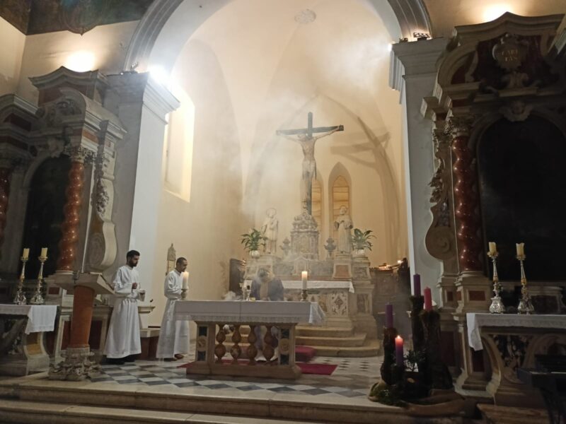 Na početku homilije, fra Josip je podsjetio na povijesne činjenice od dolaska sv. Franje Asiškoga na hrvatsko tlo, preko nastanjivanja fratara u Šibeniku, do preseljenja unutar gradskih zidina i podizanja novog samostana i crkve – najstarije crkvene institucije u Šibeniku.