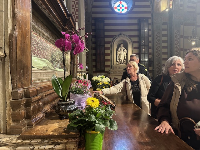 Prvoga dana vjernici su posjetili Svetište u Loretu, a zatim su u Svetištu sv. Josipa Kupertinskoga u Osimu slavili svetu misu koju je predslavio fra Josip Ivanović. U svojoj homiliji fra Josip je istaknuo važnosti imati „srca gore kod Gospodina“ kako je svojim životom posvjedočio sveti Josip Kupertinski, svetac letač i zaštitnik učenika i studenata. Istoga dana hodočasnici su vidjeli ćelije brata Ilije i molili na grobu franjevačke trećoredice svete Margarite Kortonske u Cortoni.