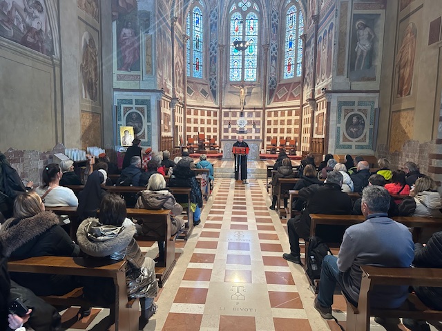 U srijedu 25. veljače hodočasnici su sudjelovali na međunarodnoj svetoj misi u Gornjoj bazilici sv. Franje, a zatim su posjetili Donju baziliku i štovali zemne ostatke sv. Franje Asiškoga. Domaćin i vodič u Bazilici bio je fra Josip Blažević. U poslijepodnevnim satima hodočasnici su imali priliku iskoristiti za osobne pobožnosti i obilazak Asiza, a zatim su zajednički posjetili Eremo delle Carceri.